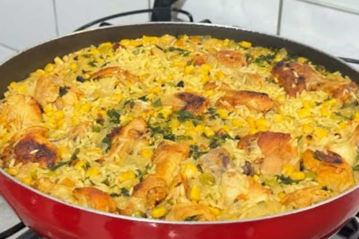 Arroz com frango completo e delicioso, feito em uma única panela para facilitar sua vida