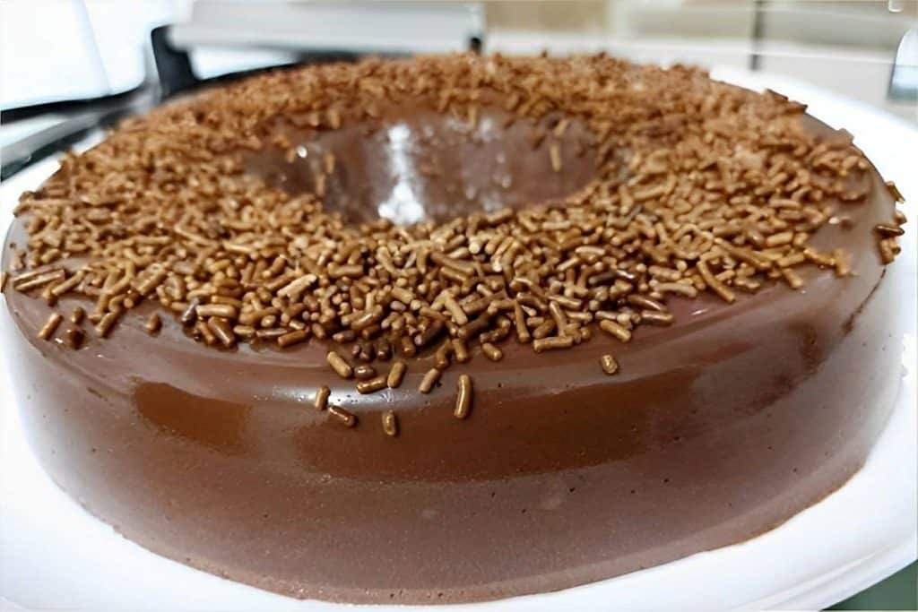 - Retire da geladeira, polvilhe granulado de chocolate e sirva esse maravilhoso brigadeirão bem gelado!