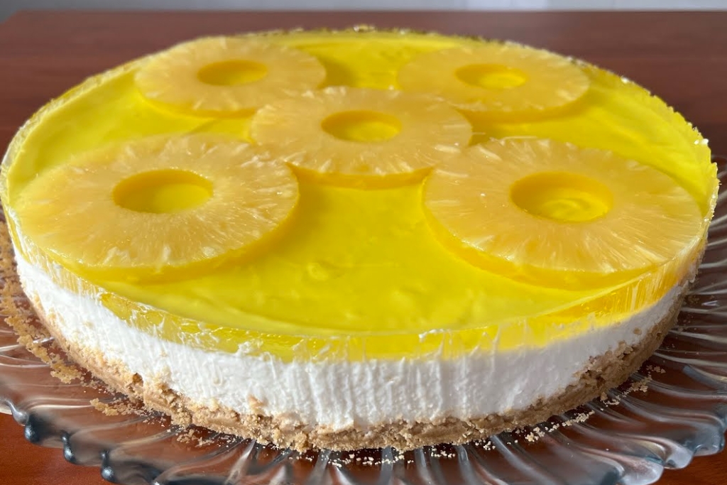 - Decore: Antes de servir, cubra o cheesecake com pedaços de abacaxi para dar um toque especial.