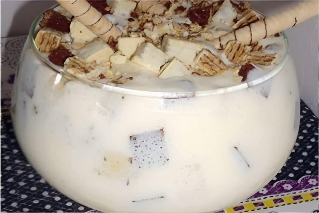 - Alterne camadas de creme e Bis, utilizando uma taça funda ou tigela.