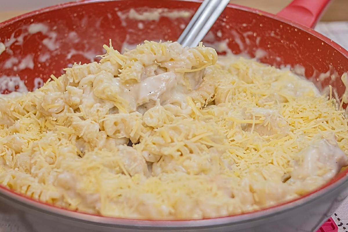 - Polvilhe queijo ralado e sirva esse delicioso macarrão com frango ao molho branco!