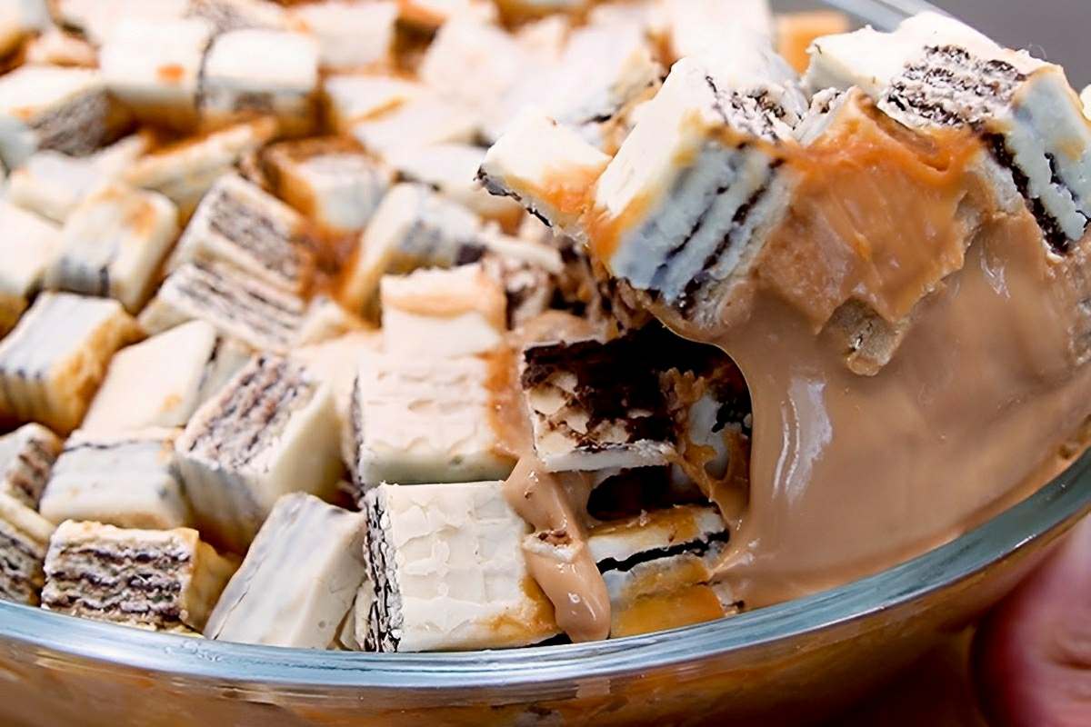 Para fazer essa sobremesa vamos precisar de creme de leite, doce de leite bis branco. Iremos misturar numa travessa os ingredientes da sobremesa deixando para adicionar o bis branco por último. Em seguida vamos levar a sobremesa para gelar por 12 horas. Depois desse tempo, iremos retirar da geladeira e saborear cada porção deliciosa dessa incrível sobremesa!