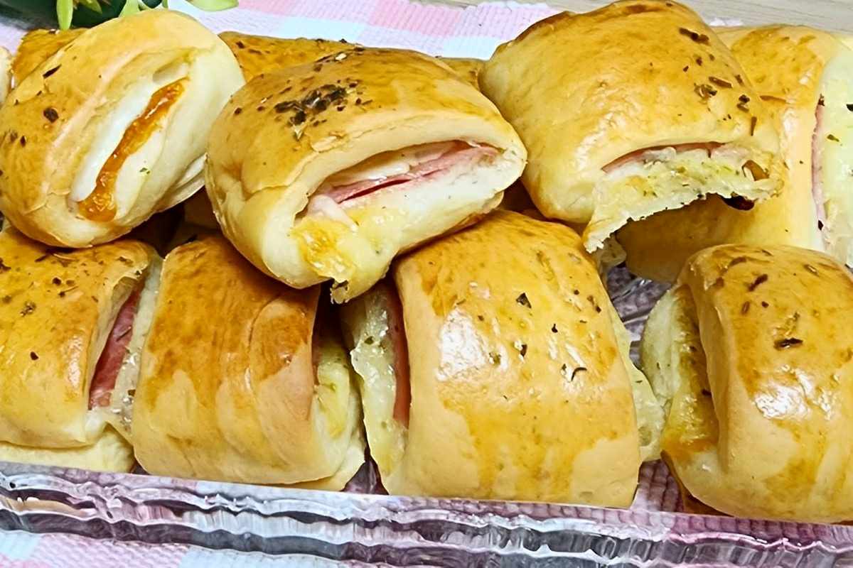 Para fazer esse salgado assado vamos usar ingredientes que possivelmente você deve ter em casa, como açúcar, sal, óleo, leite, farinha de trigo, fermento biológico seco, orégano, presunto, queijo muçarela, e ovo. O modo de preparo desse salgado assado é extremamente simples! Misturamos açúcar, fermento e leite morno em uma tigela para ativar o fermento. Adicionamos o óleo e juntamos o fermento aos poucos. Quando a massa ficar pesada, adicionamos o sal, sovamos bem e deixamos descansar por 30 minutos. Porcionamos a massa, recheamos, fechamos e deixamos descansar por mais 15 minutos. Assamos por 30 minutos, esperamos amornar e saboreamos essa delícia de salgado assado!