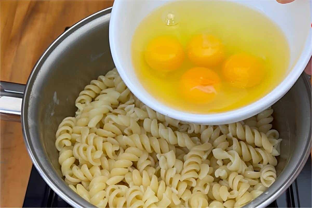 - Misture tudo muito bem para agregar. Acrescente os ovos, e deixe cozinhar até obter ovos mexidos.