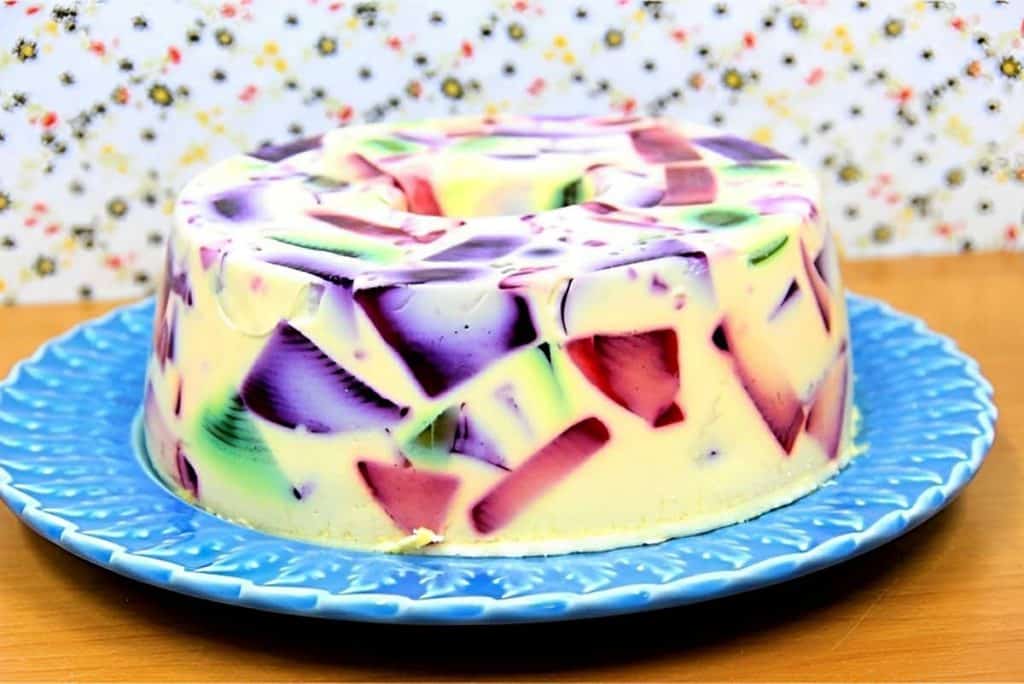 - Retire da geladeira, desenforme e sirva em seguida essa gostosa gelatina colorida com apenas 2 ingredientes.