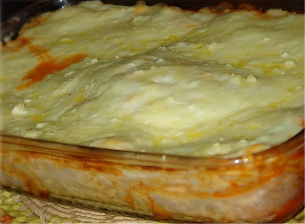 - Finalize com uma camada de molho branco coberto com muçarela.