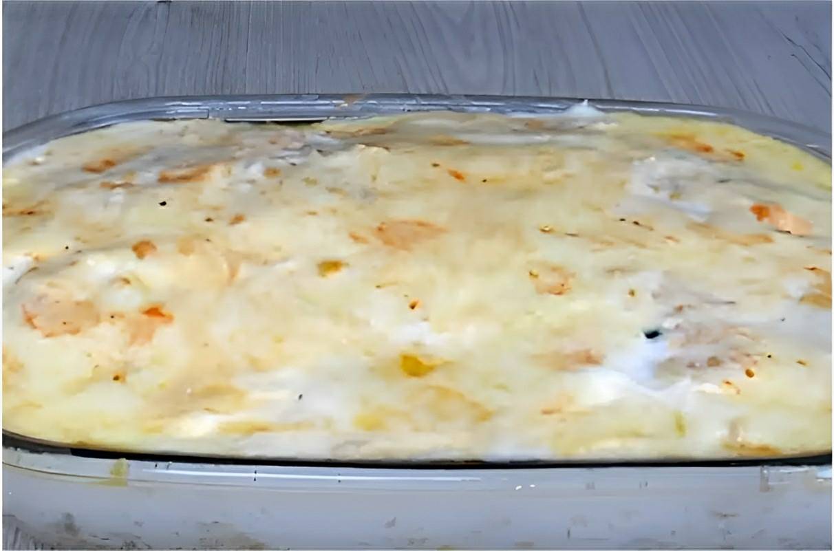- Numa travessa refratária, faça uma camada de frango desfiado, outra de macarrão e outra de frango. Cubra tudo com o molho branco.