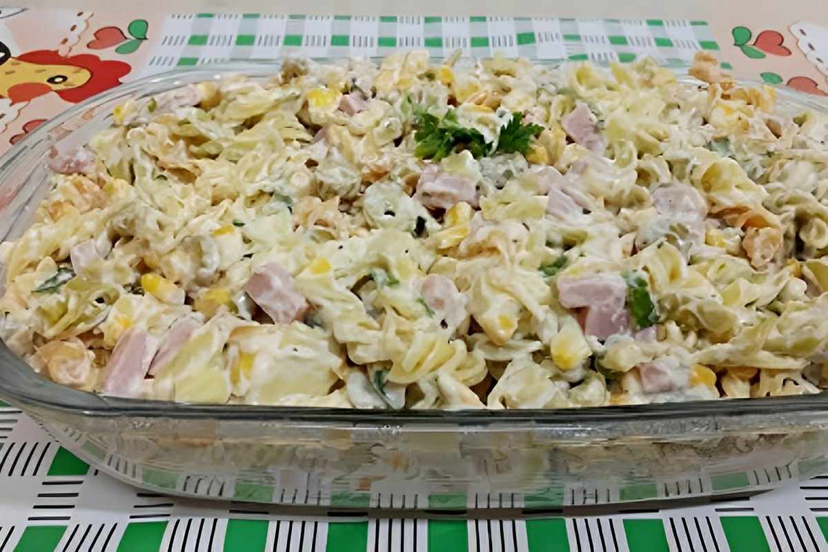 Para fazer essa macarronese vamos precisar de ingredientes que talvez você tenha em casa, como sal, macarrão parafuso, milho verde, presunto, azeitonas verdes picadas, queijo muçarela, creme de leite, maionese, cheiro-verde, e pimenta-do-reino. Preparar essa delícia é extremamente simples! Primeiro, cozinhamos o macarrão até ficar al dente e escorremos. Colocamos numa tigela com os demais ingredientes, misturamos e temperamos muito bem. Depois é só colocar em um refratário para servir e apreciar essa iguaria chamada macarronese!