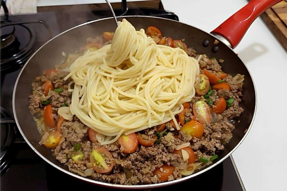 Macarrão na manteiga com carne moída muito saboroso e fácil de fazer