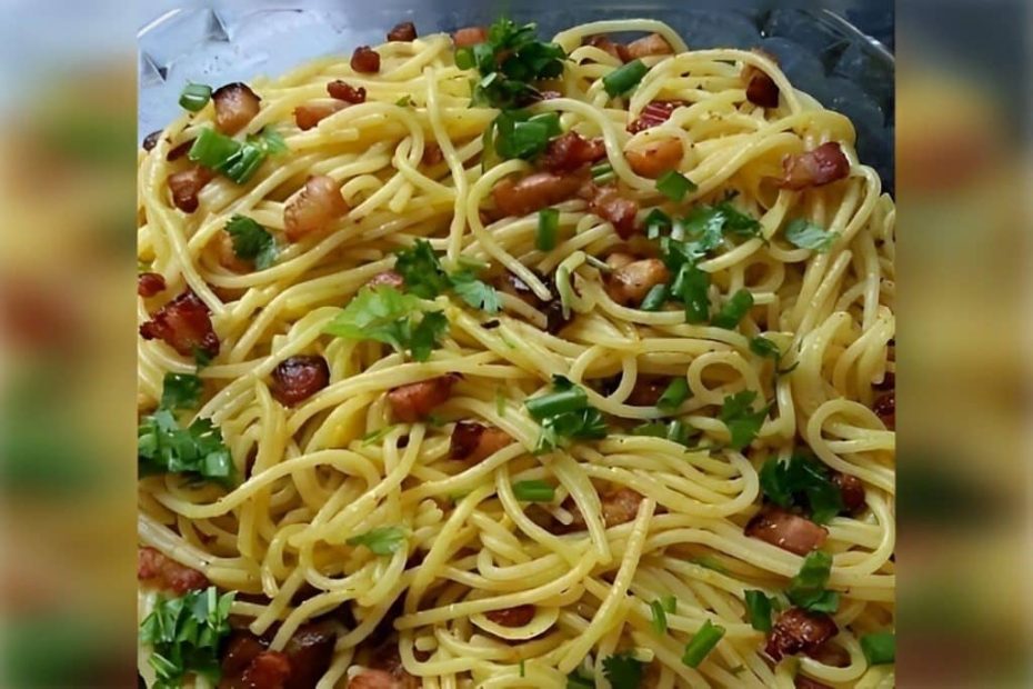 Macarrão ao alho e óleo com bacon uma receita simples e muito saborosa