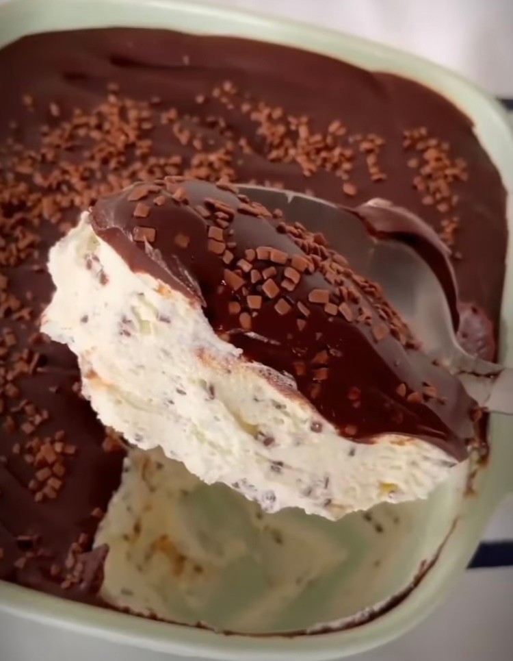 - Coloque sobre o creme gelado e decore com chocolate granulado a gosto.