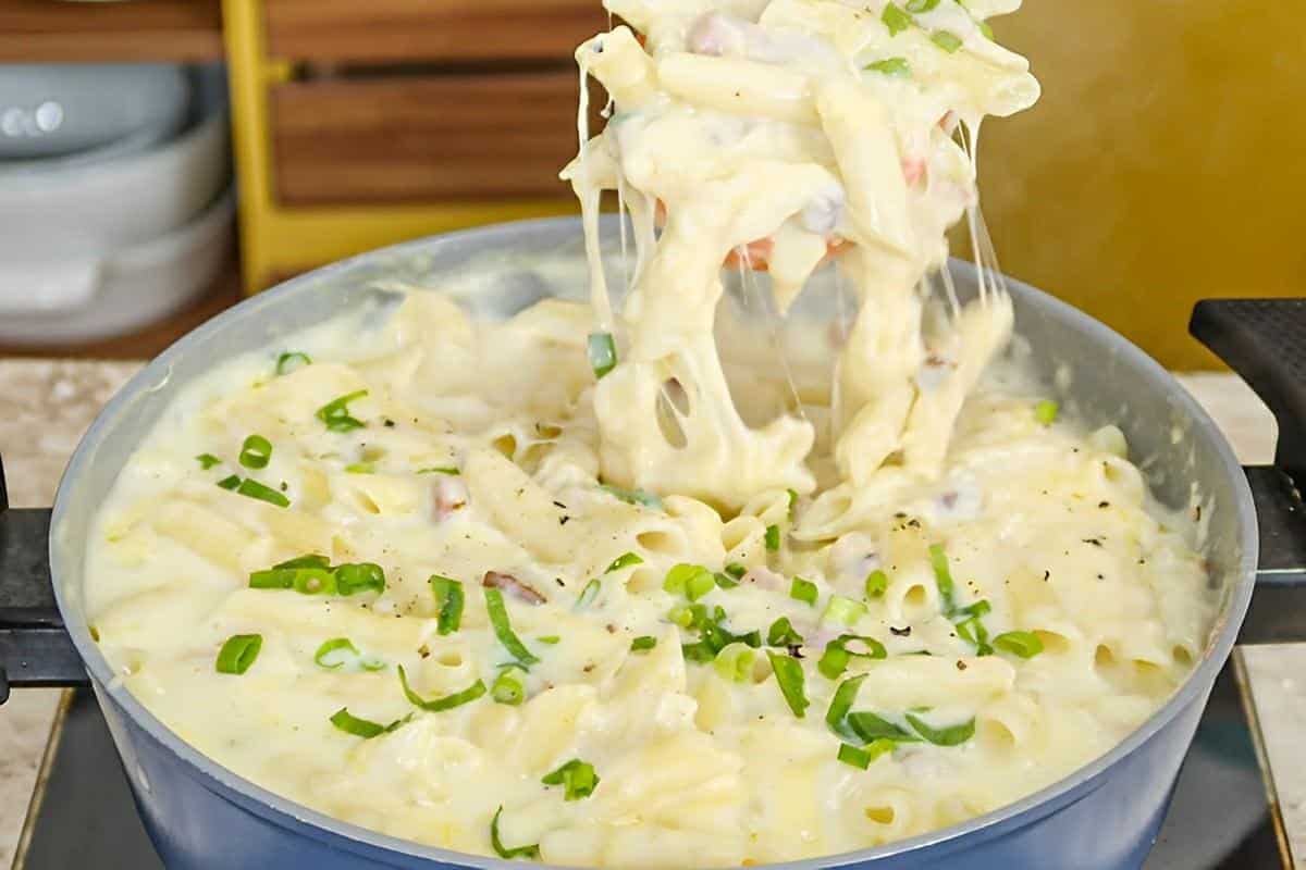 Pensa num macarrão com molho branco, super cremoso, e uma textura tão deliciosa que só de imaginar dá água na boca. É a opção ideal para servir num almoço ou um jantar. Confira o passo a passo dessa versão de macarrão com molho branco, e você vai adorar o resultado divino!