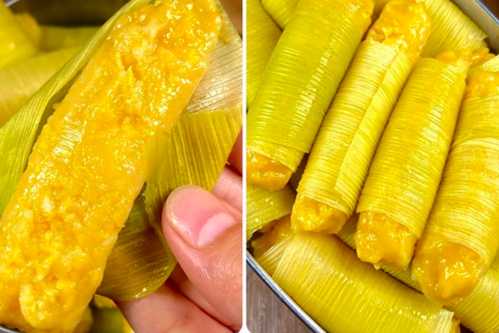 - Então coloque as pamonhas em uma assadeira e leve ao forno por cerca de 45 minutos, ou até que fiquem douradas e crocantes por fora e macias por dentro.