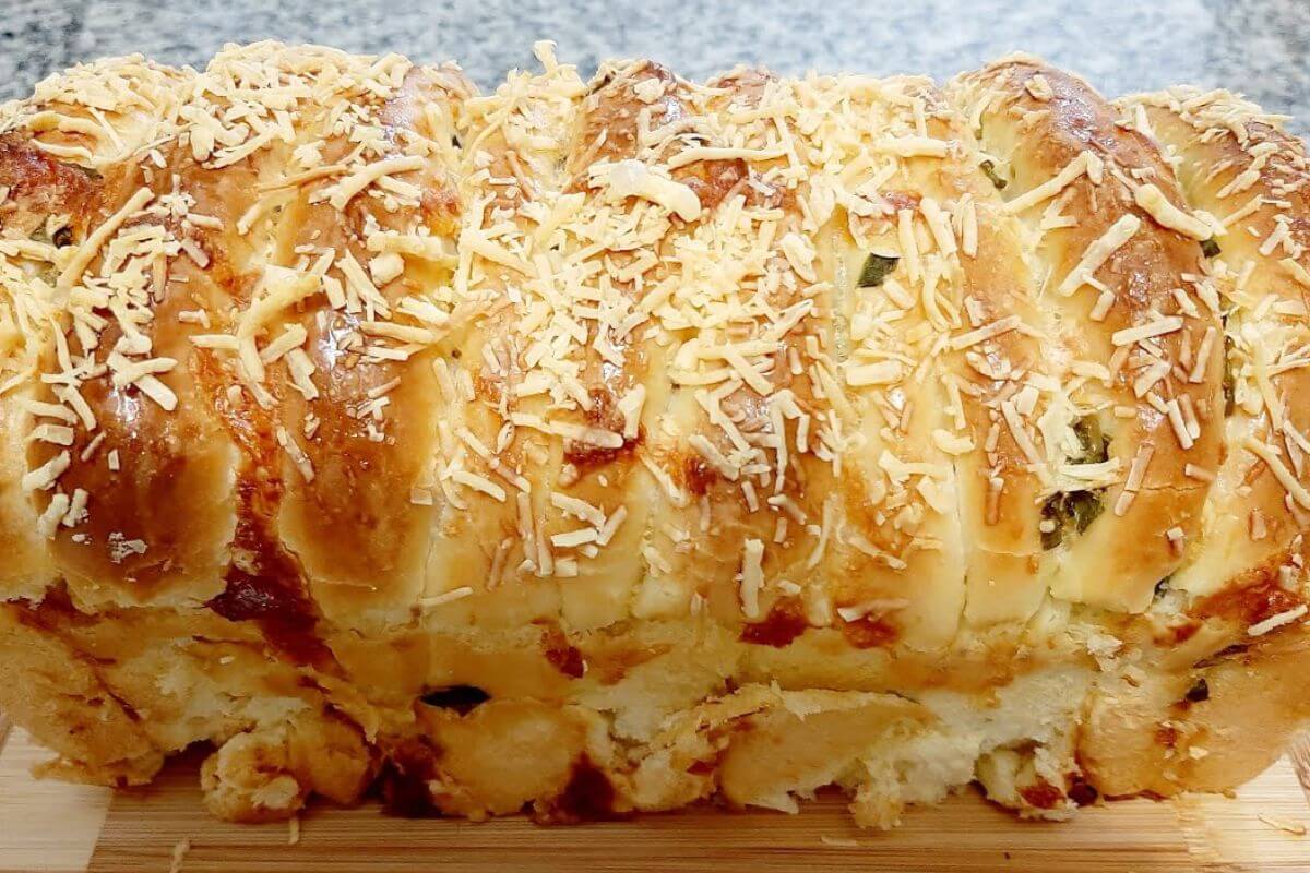 Para fazer pão de alho iremos precisar para a massa de farinha de trigo, leite morno, açúcar, manteiga derretida, sal, fermento biológico e 1 ovo. Para o recheio do pão de alho vamos precisar de mussarela ralada, alho picado, manteiga e cebolinha verde. Para o preparo da cobertura do pão de alho, iremos utilizar ovo batido + água e queijo parmesão ralado. Para dar continuidade na receita de pão de alho teremos que seguir corretamente a sequência do passo a passo tanto do preparo da massa, da modelagem, do recheio, como também da montagem e finalização para que o resultado do pão de alho seja perfeito. Depois disso, iremos levar o pão de alho para assar por 40-45 minutos, retirar do forno, desenformar e saborear esse suculento pão de alho!