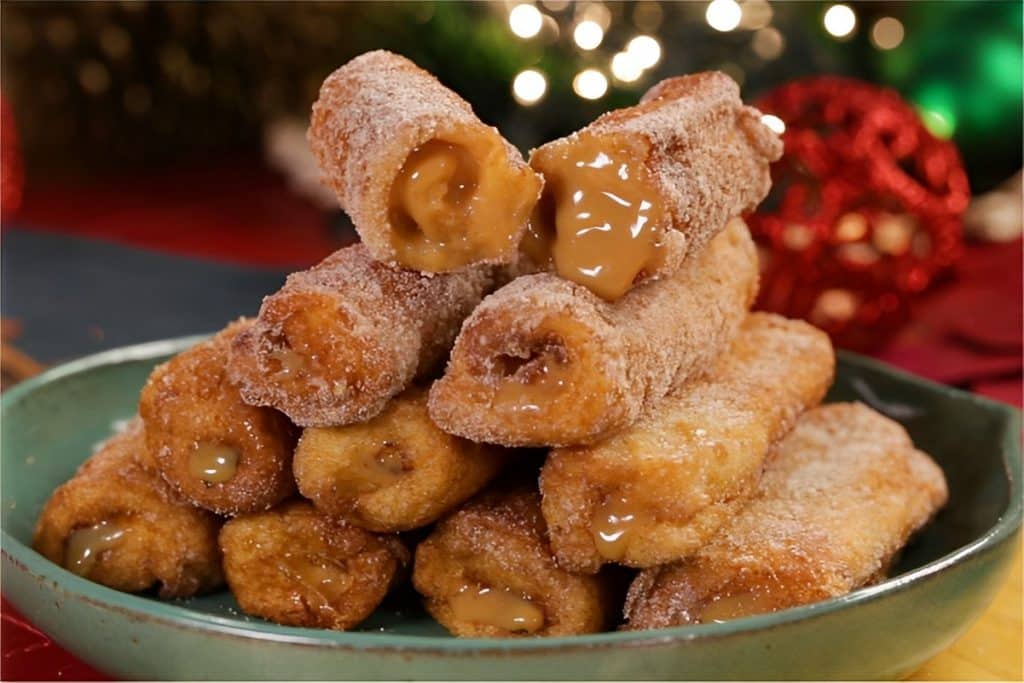 Para fazer rabanada recheada de churros, vamos precisar de leite, ovos, doce de leite, baunilha, pão de forma, açúcar com canela e óleo para fritar. Vamos achatar as fatias do pão com um rolo de massas, passar o doce de leite, fazer um rolinho, molhar no leite com baunilha, depois nos ovos batidos, e fritar em óleo quente. Depois disso vamos retirar o excesso de óleo, passar no açúcar com canela e então a mais incrível e saborosa rabanada de churros estará prontinha!