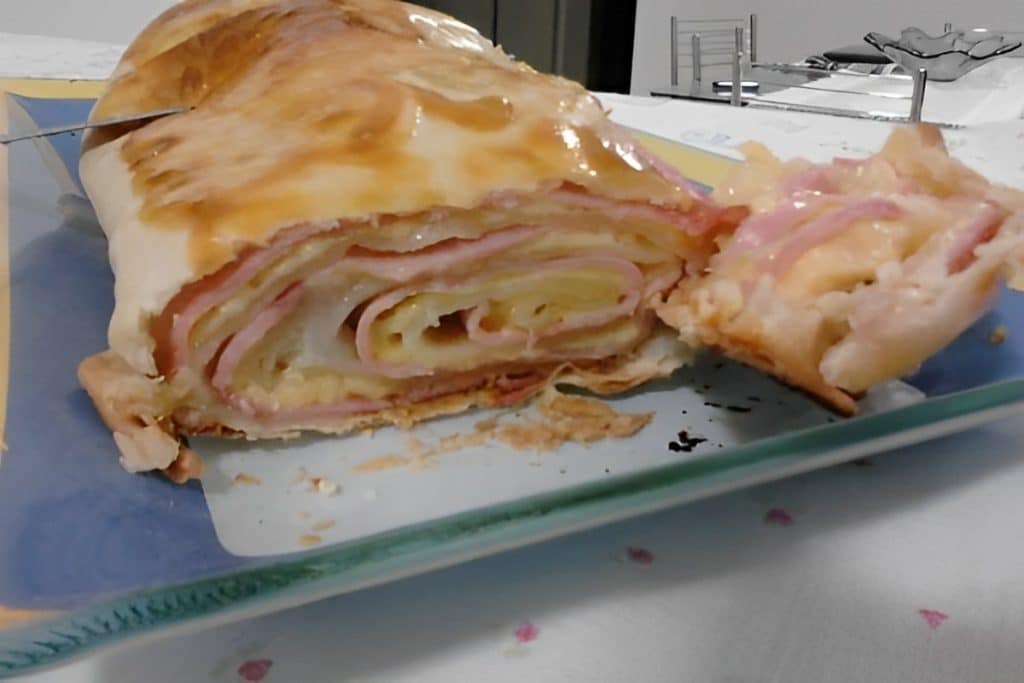 - Pronto, você já pode servir e deliciar-se com seu maravilhoso rocambole com massa de pastel quentinho!
