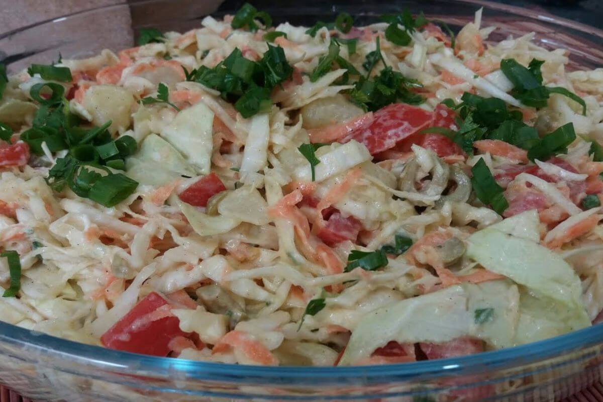 - Salada de repolho cremosa e refrescante para acompanhar seu churrasco de domingo