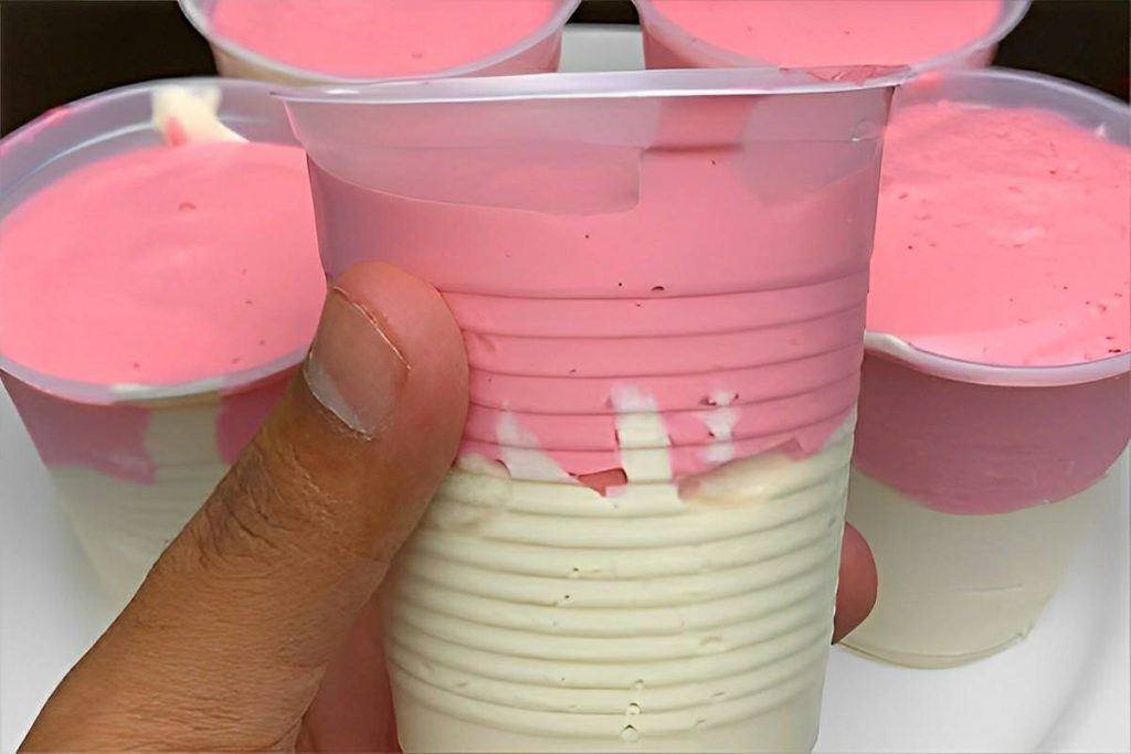 Para o preparo da sobremesa de 2 ingredientes, precisaremos de suco em pó de 2 sabores diferentes de sua escolha, desde que sejam adoçados e de creme de leite. Inicialmente, vamos bater na batedeira cada sabor de suco com o creme de leite, e colocar a mistura em copos descartáveis (apenas até a metade do copo), preenchendo com o outro creme, preparado com o suco de sabor diferente. Os copos ficarão meio a meio com cada um dos cremes. Para finalizar, vamos colocar na geladeira, deixando por 1 hora, depois retirar da geladeira, servir e se deliciar com a maravilhosa sobremesa de 2 ingredientes!
