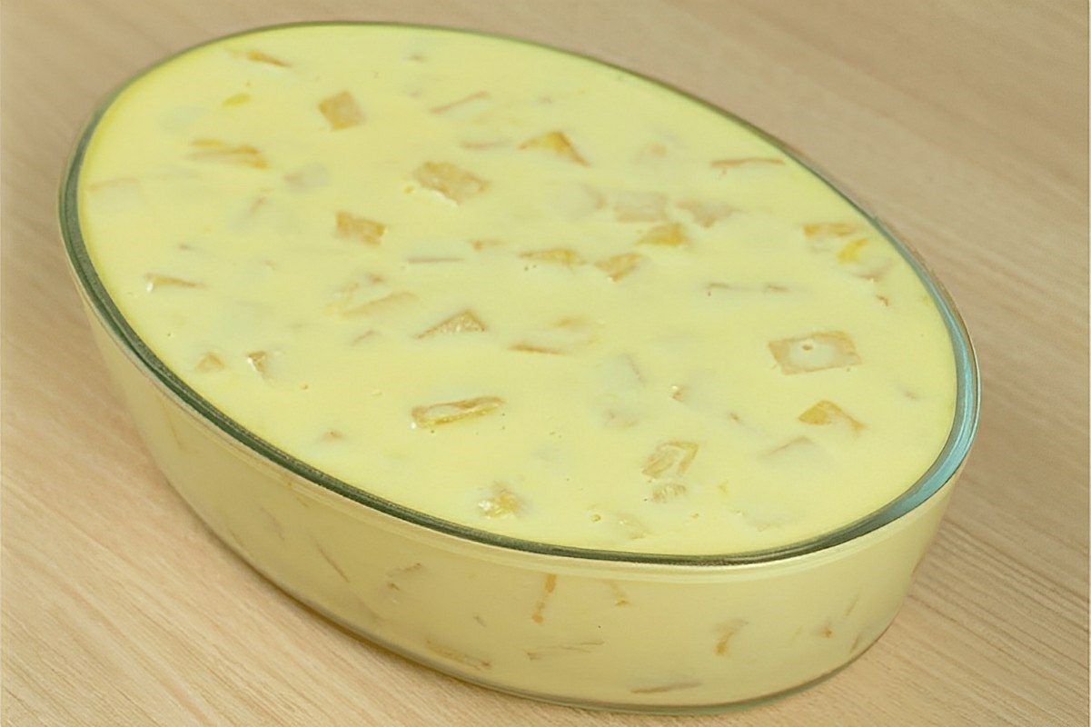 Para fazer essa sobremesa de abacaxi não tem segredo algum e certamente você vai tirar de letra. Cada etapa é muito simples e o resultado é de dar água na boca. Essa sobremesa combina toda a cremosidade do creme de leite e do leite condensado com a acidez e refrescância do abacaxi, ou seja, uma combinação perfeita. Para fazer, começamos cozinhando abacaxi picado em água fervente e depois juntamos gelatina de abacaxi. Em seguida, acrescentamos creme de leite, leite condensado, misturamos tudo e passamos para uma travessa. Agora é só aguardar um tempinho na geladeira e está pronta nossa sobremesa de abacaxi!