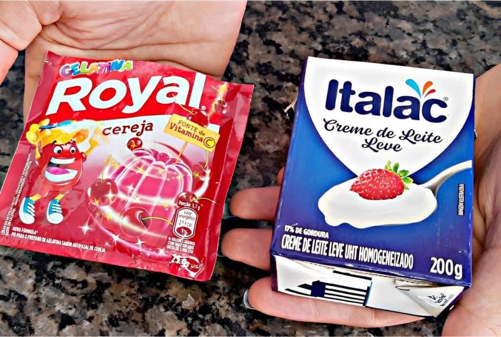 Essa sobremesa é perfeita para quando você precisa fazer algo especial para uma refeição, mas está com pouquíssimos ingredientes à disposição. Para fazer essa receita, precisaremos apenas de gelatina em pó sabor cereja ou outro de sua preferência, água e creme de leite. O creme de leite, esse único ingrediente, fará toda a diferença e vai deixar sua gelatina muito mais especial. Quando você disser que é apenas gelatina, muitos podem até duvidar. O preparo é tão simples quanto o da gelatina comum: é só bater tudo no liquidificador, colocar numa travessa e levar para a geladeira.