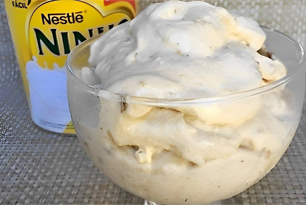 Para a receita da sobremesa de 2 ingredientes utilizaremos: bananas congeladas e leite Ninho. Você pode descascar e picar as bananas para depois levá-las ao freezer ou congelador, o que facilitará na hora de bater. Para fazer essa sobremesa, primeiramente iremos bater as bananas no liquidificador ou no processador até obter uma massa homogênea. Em seguida, vamos acrescentar o leite Ninho, misturar bem com uma colher e levar ao freezer por uns 20 minutos. Depois é só retirar do freezer, servir e aproveitar essa gostosura de sobremesa de 2 ingredientes!
