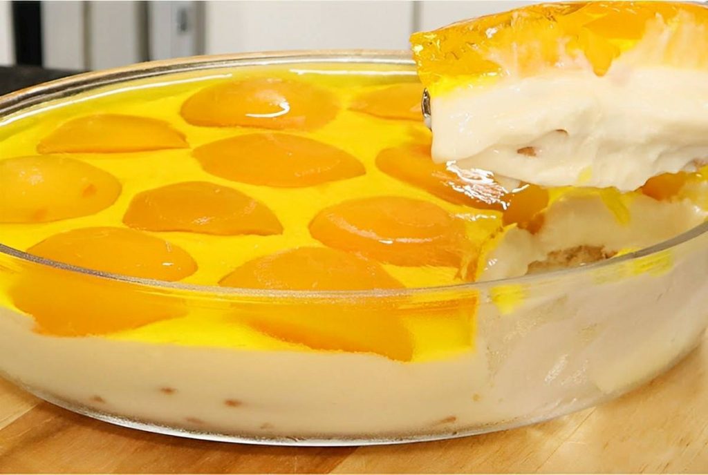 - Despeje sobre os pêssegos no refratário e leve para gelar por 3 horas.