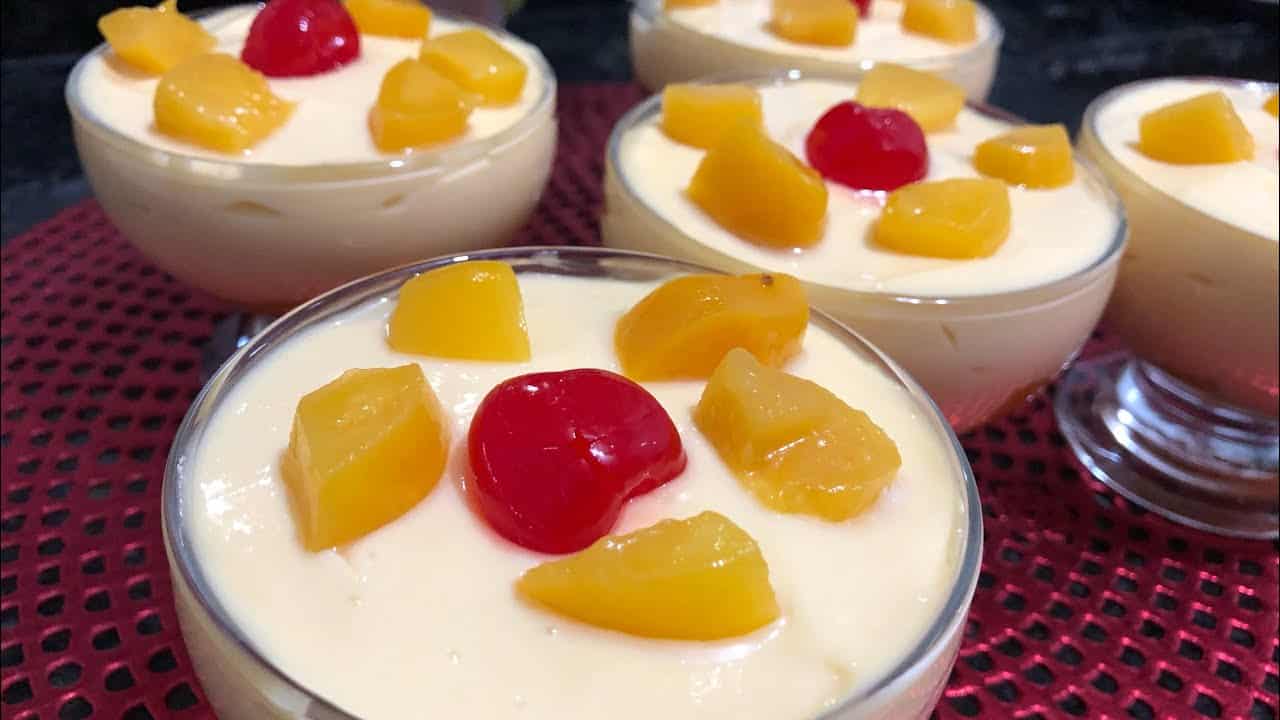 - 1 lata de frutas em calda (pêssego, abacaxi, etc.) ou ½ kg de frutas frescas como manga e morango