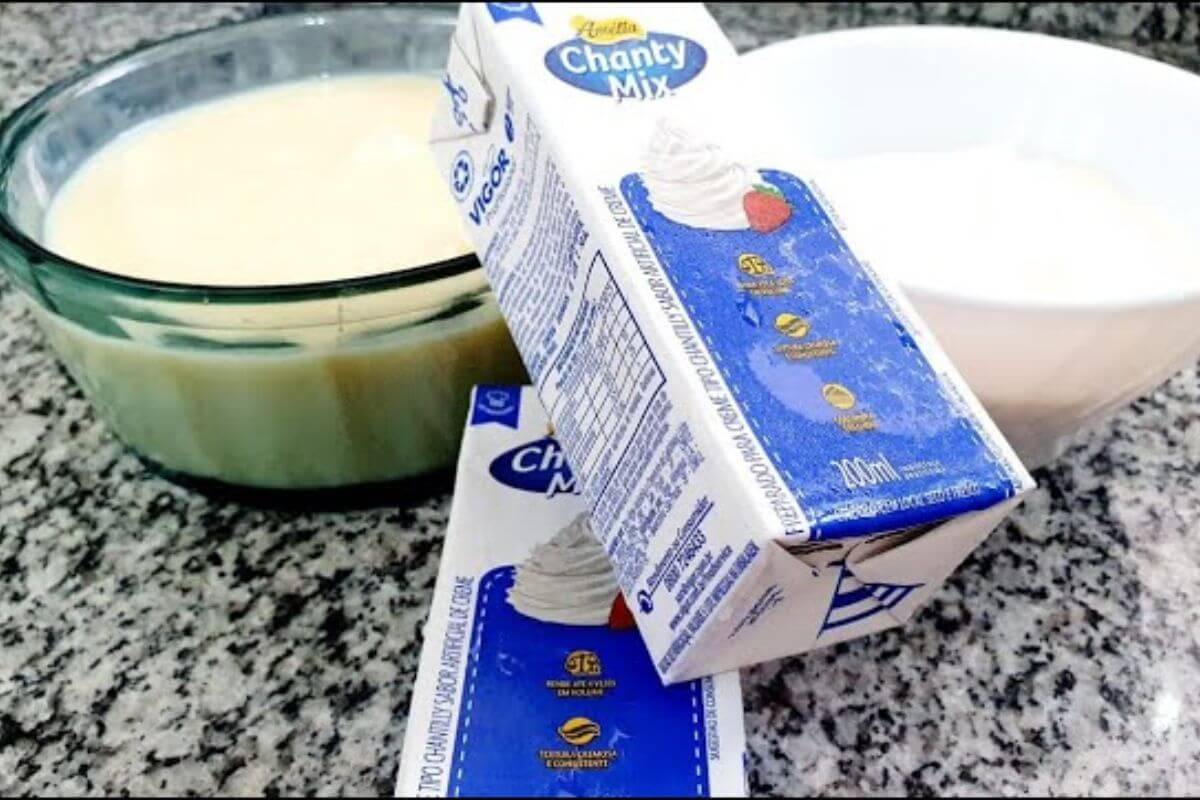 - Na batedeira coloque a mistura para bate chantilly bem gelada, e bata bem até atingir picos firmes. Misture o brigadeiro já frio e mexa delicadamente para incorporar.