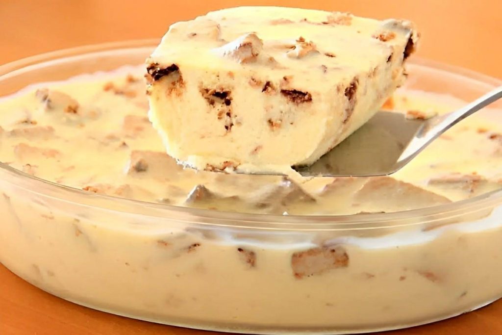 Para a sobremesa rápida, utilizaremos: biscoito wafer, leite em pó, leite condensado, creme de leite, gelatina incolor e água. Vamos começar hidratando e dissolvendo a gelatina na água de acordo com as orientações da embalagem. Na sequência, vamos bater no liquidificador todos os ingredientes, com exceção dos biscoitos que serão acrescentados depois. Vamos passar a mistura da sobremesa para um recipiente, adicionar os biscoitos picados, mexer bem e passar para um refratário. Vamos deixar gelar por 1 hora, retirar e então servir para a família reunida essa espetacular sobremesa rápida!