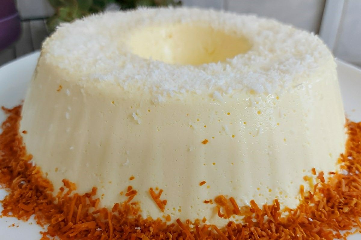 - Leve para gelar até ficar bem firme. Retire da geladeira, desenforme numa travessa, e decore com coco ralado branco e queimado a gosto.