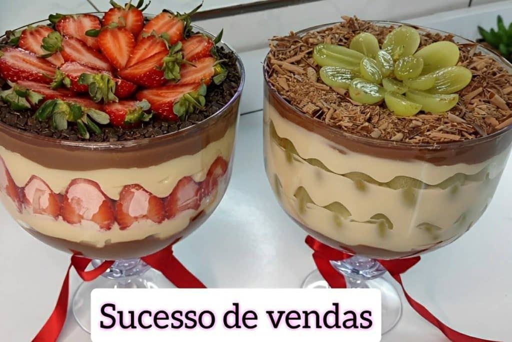 Obs.: a quantidade de creme e ganache é para a montagem de apenas 1 taça. Se for fazer 2 taças dobre a quantidade de ingredientes da receita.