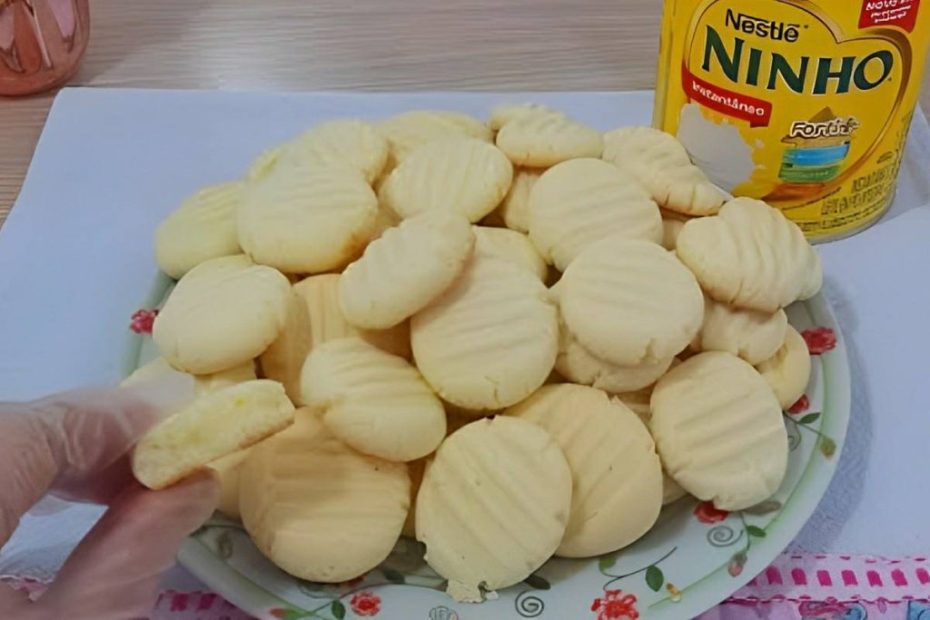 Bolachinha de leite condensado com leite ninho que derrete na boca para servir com café ou chá